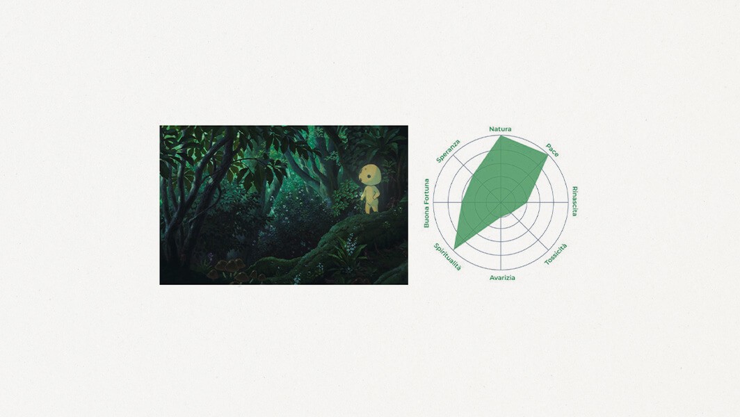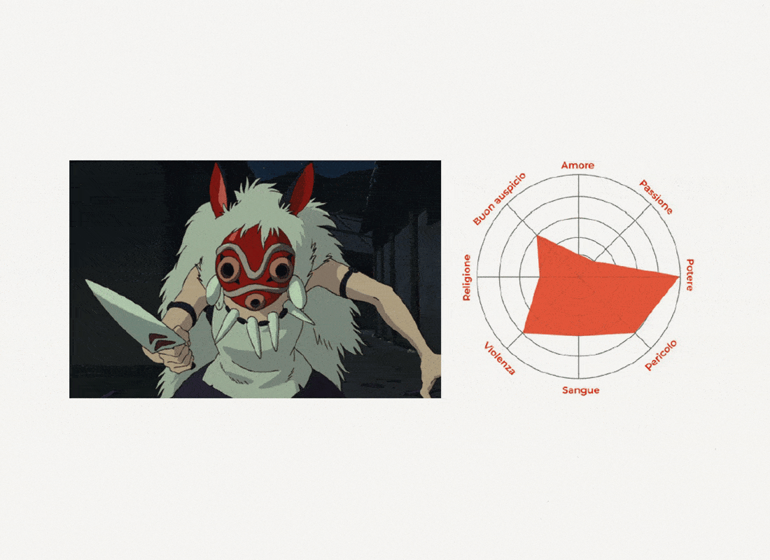 Different radial charts show the meanings commonly associated with each color, highlighting which of these are most present in a specific scene. They reveal how the same hue can support different, and sometimes opposing, interpretations depending on the narrative intent.
